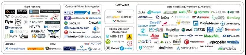 合并、收購、退出市場和業(yè)務(wù)轉(zhuǎn)移,這樣的事件正在大量發(fā)生。3DR、PrecisionHawk和Agribotix已經(jīng)遠離硬件,現(xiàn)在主要或全部集中在軟件上。這在很大程度上是由大疆創(chuàng)新的市場優(yōu)勢引發(fā)的。3DR曾指出,競爭定價是導(dǎo)致他們在硬件方面失敗的一個關(guān)鍵原因。