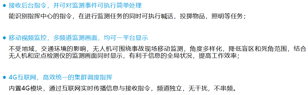 主要用于警示喊話,引導(dǎo),配備有4K高清相機(jī)可對現(xiàn)場進(jìn)行實時高清監(jiān)控并回傳。