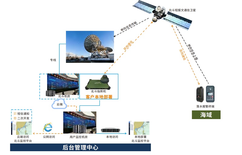 海洋水上作業(yè)中,人員落水問題時(shí)有發(fā)生,過去救援人員很難獲取落水人員呼救信息、確定落水人員位置、事故發(fā)生時(shí)間以及事態(tài)嚴(yán)重程度,以給予最及時(shí)的救援,管理人員都對此無計(jì)可施,缺乏有效技術(shù)手段是目前海上事故救援效率低、救援難度高的重要原因。本方案基于北斗RDSS導(dǎo)航衛(wèi)星實(shí)時(shí)進(jìn)行循環(huán)定位、通信操作,通過衛(wèi)星轉(zhuǎn)發(fā)落水人員的準(zhǔn)確坐標(biāo)、時(shí)間等信息實(shí)時(shí)地告知教援中心,從而顯著提高海上救援的響應(yīng)速度和搜救成功率。
