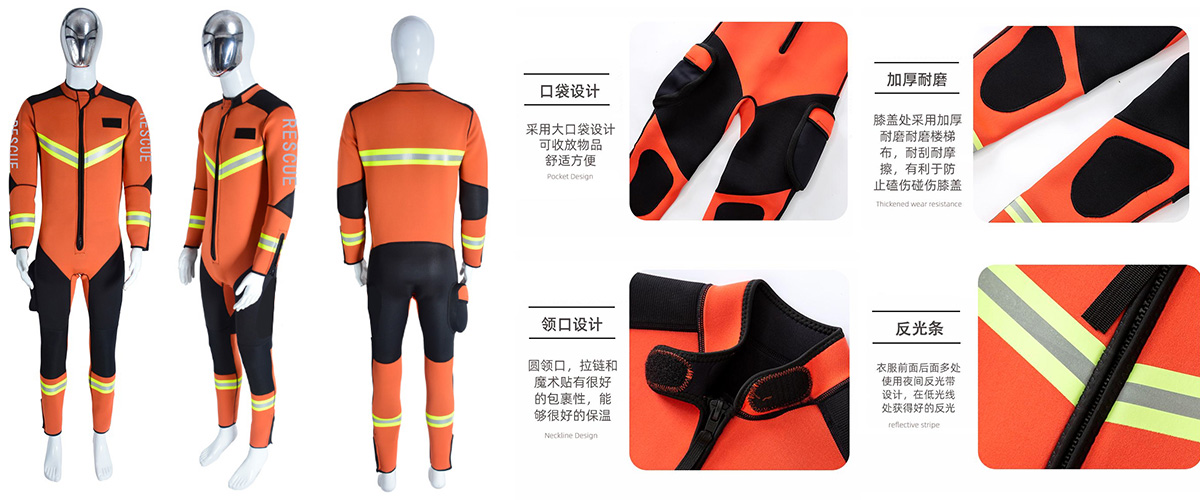 - ZJ013-B救援服:專為-30℃至0℃的超低溫水域設計,采用高分子雙面貼膜焊接,全身防水耐用,輕松應對極端環(huán)境。