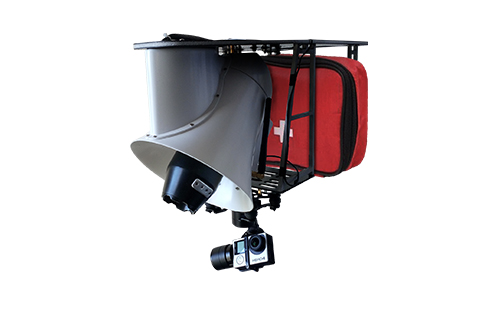 四合一裝備 四合一裝備包括喊話器、高清相機、照明設備、急救包設備。 無線傳話距離可達3公里,實時無線喊話,實時高清圖像監(jiān)控,遠距離照明并可以投擲急救包。 可在反恐救援、偵查取證、交通監(jiān)測等中應用。