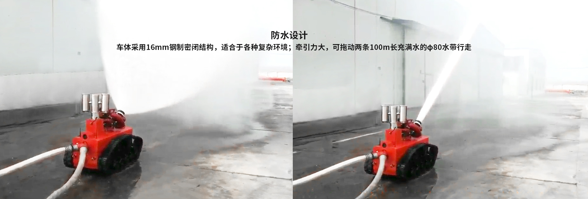 · 牽引力大:可拖動(dòng)兩條100m長(zhǎng)充滿水的φ80水帶行走;