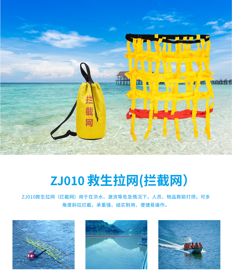 組件包含水域救援?dāng)r截網(wǎng),燈光信號裝置,環(huán)保鉛塊,專用快卸式鉛塊袋,鉛塊袋連網(wǎng) D 型扣